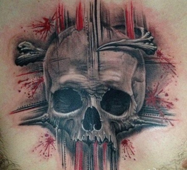 男人前胸潮流很帅的欧美骷髅纹身图案