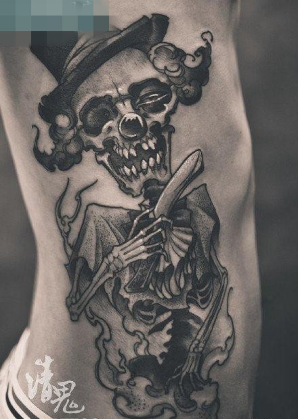 侧腰女骷髅刺青图案图片_骷髅纹身图案大全_纹身图吧