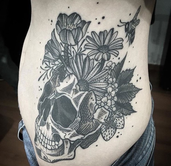 侧腰女骷髅刺青图案图片_骷髅纹身图案大全_纹身图吧