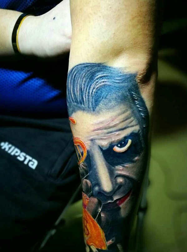 一款重口味手臂人像纹身图案