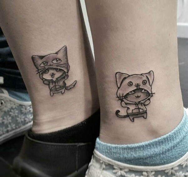 适合闺蜜和情侣的脚腕卡通猫纹身刺青