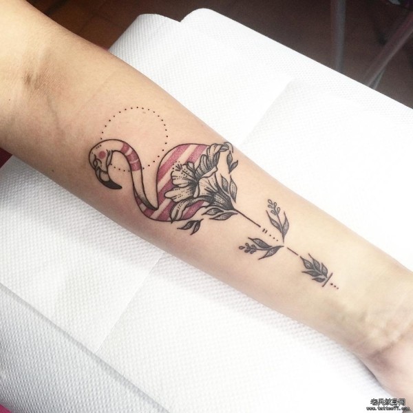 手臂彩绘火烈鸟花卉纹身图案