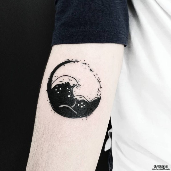 小臂黑色图腾海浪纹身图案
