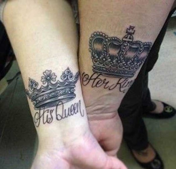 情人同款K&Q的国王皇后的皇冠纹身图案欣赏