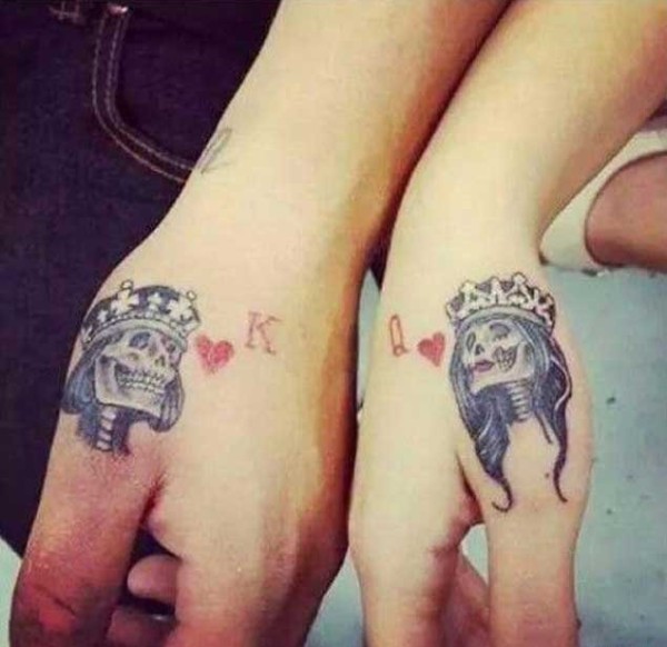 情人同款K&Q的国王皇后的皇冠纹身图案欣赏