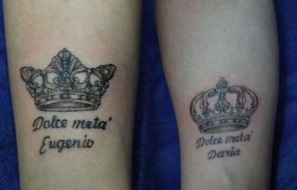 情人同款K&Q的国王皇后的皇冠纹身图案欣赏