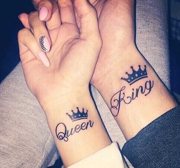 情人同款K&Q的国王皇后的皇冠纹身图案欣赏