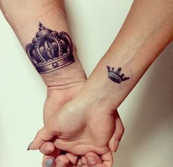 情人同款K&Q的国王皇后的皇冠纹身图案欣赏