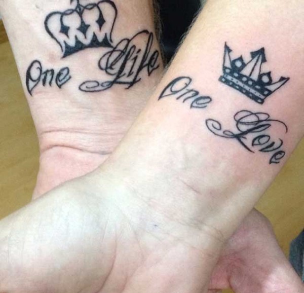 情人同款K&Q的国王皇后的皇冠纹身图案欣赏