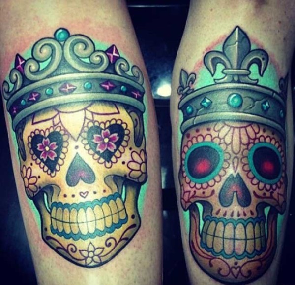情人同款K&Q的国王皇后的皇冠纹身图案欣赏