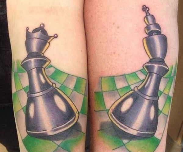情人同款K&Q的国王皇后的皇冠纹身图案欣赏