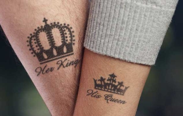 情人同款K&Q的国王皇后的皇冠纹身图案欣赏