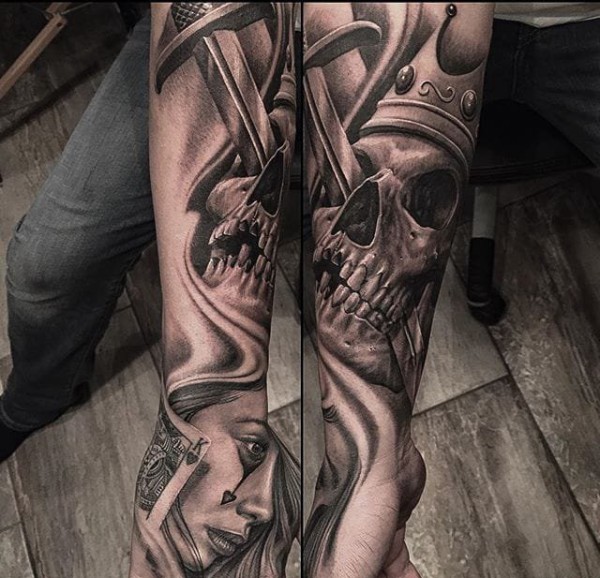 无可挑剔的黑灰色花臂纹身图案来自格雷格