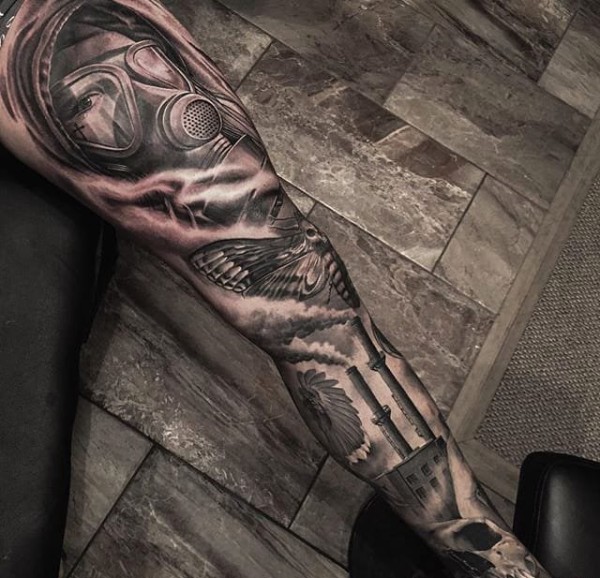 无可挑剔的黑灰色花臂纹身图案来自格雷格