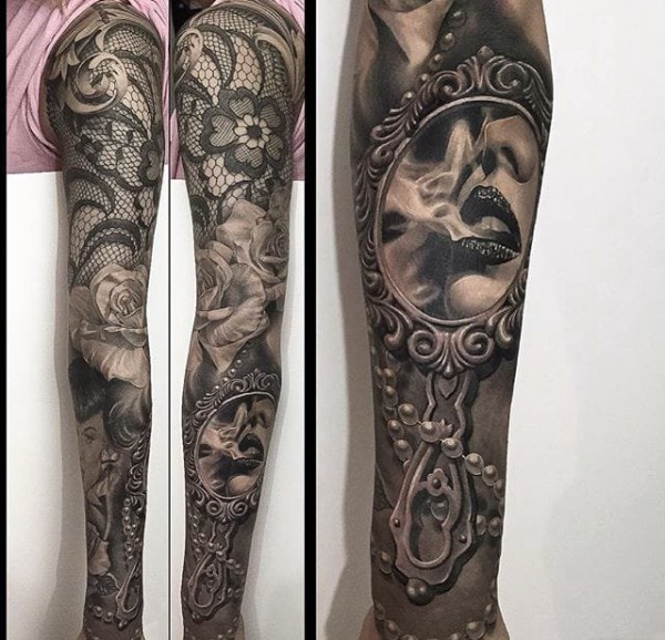 无可挑剔的黑灰色花臂纹身图案来自格雷格