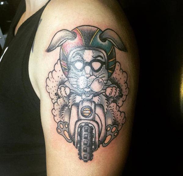 一组男性帅气的关于摩托车骑手主题的纹身图案