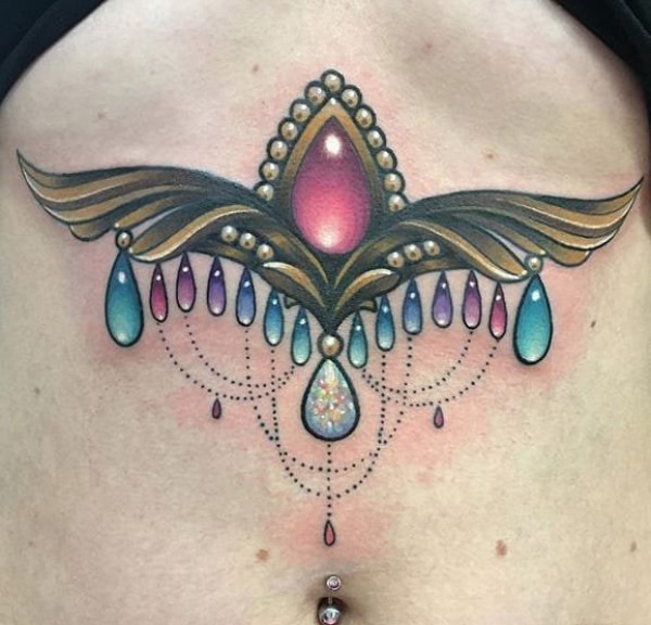彩色的光芒四射的宝石水晶纹身图案来自凯利