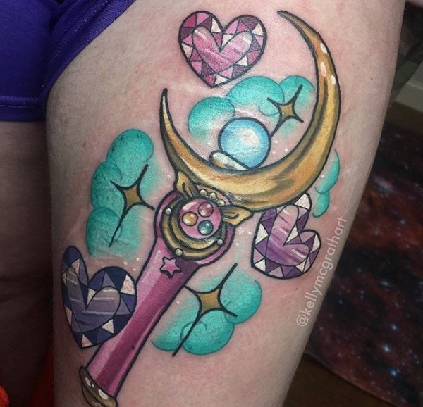 彩色的光芒四射的宝石水晶纹身图案来自凯利