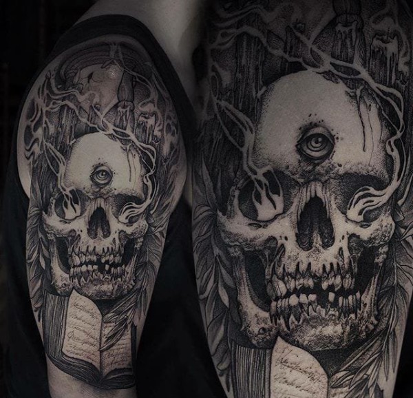 黑色点刺纹身极具说明性的恐怖纹身图案大全