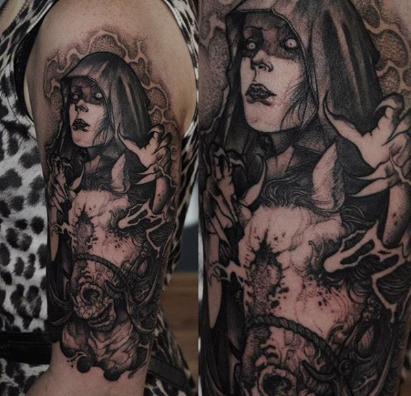 黑色点刺纹身极具说明性的恐怖纹身图案大全