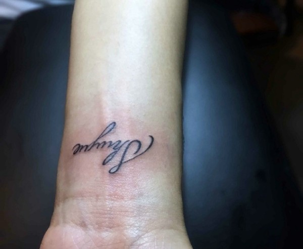 手腕上简单的英文字母纹身图