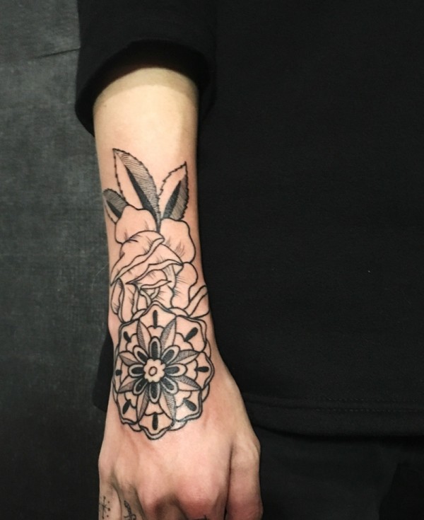小臂手背时尚好看的花朵纹身刺青