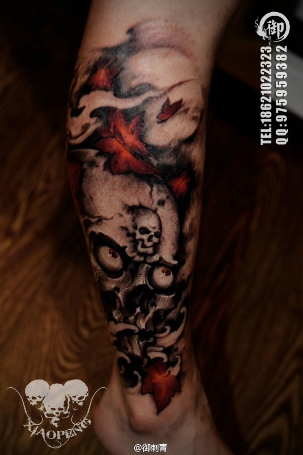枫叶纹身骷髅文身彩色刺青_男士小图_骷髅纹身图案大全_纹身图吧