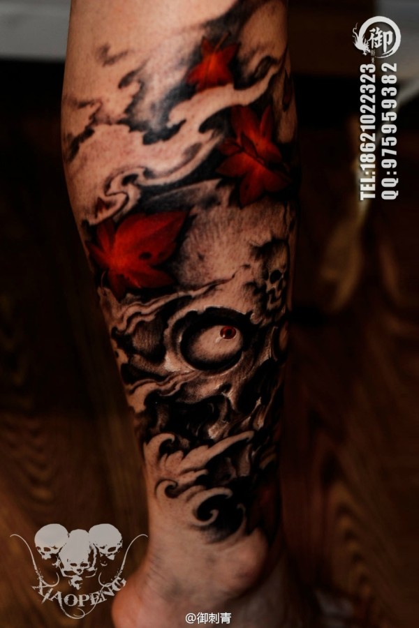 枫叶纹身骷髅文身彩色刺青_男士小图_骷髅纹身图案大全_纹身图吧