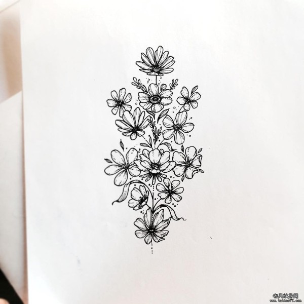 花卉欧美点刺小清新纹身图案手稿