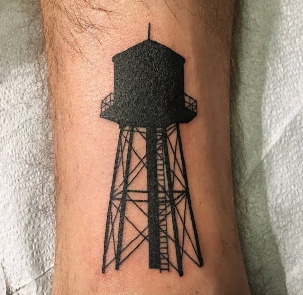 黑色的小腿图腾纹身水塔的建筑物纹身图片