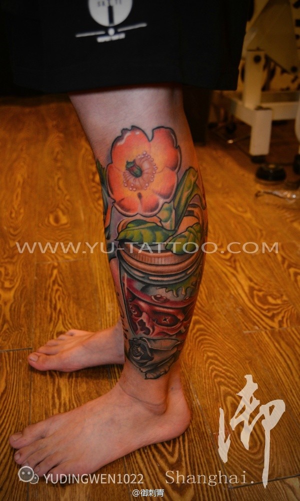 花腿纹身--一组大黑腿纹身图案作品欣赏