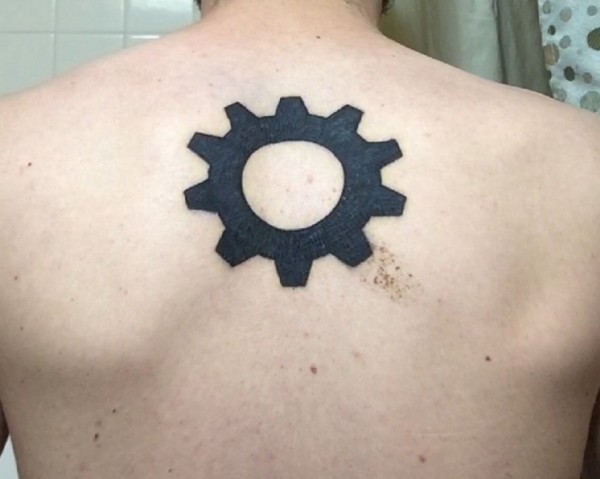 一个简单而漂亮的黑色几何机械齿轮纹身图片