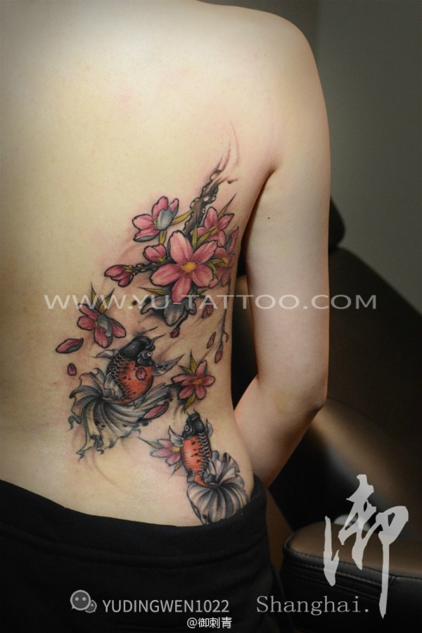 分享一款腰部时尚性感的蝶恋花纹身图案_腰部纹身图案大全_纹身图吧