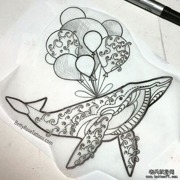 浪花鲸鱼气球个性纹身图案手稿