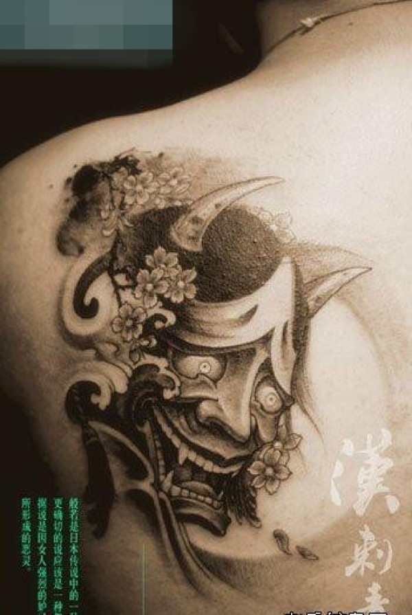男生后肩背时尚很帅的般若纹身图案