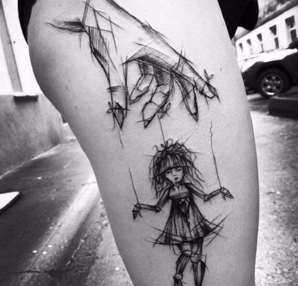 极简线条纹身 多款极简线条纹身素描欧美抽象纹身图片