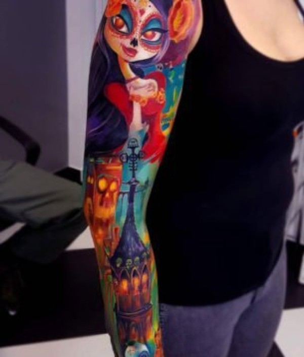 手臂一款彩色蘑菇纹身图案_臂部纹身图案大全_纹身图吧