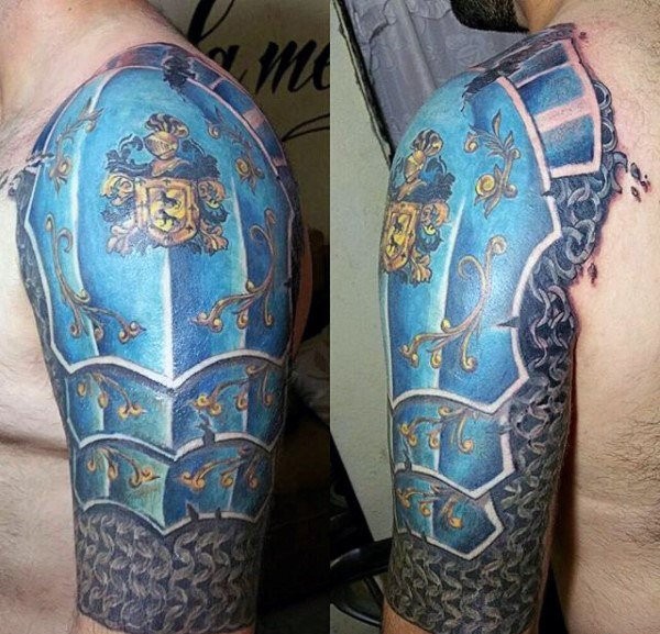 男性手大臂膀刚强有力的盔甲盾牌纹身图案