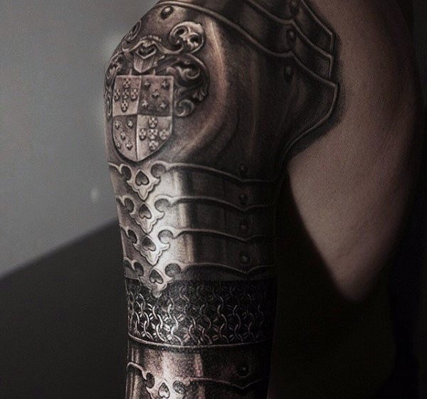 男性手大臂膀刚强有力的盔甲盾牌纹身图案