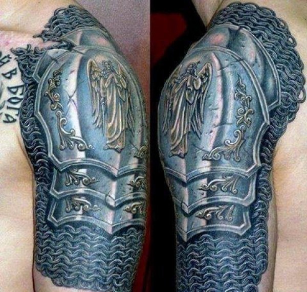 男性手大臂膀刚强有力的盔甲盾牌纹身图案