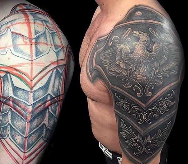 男性手大臂膀刚强有力的盔甲盾牌纹身图案