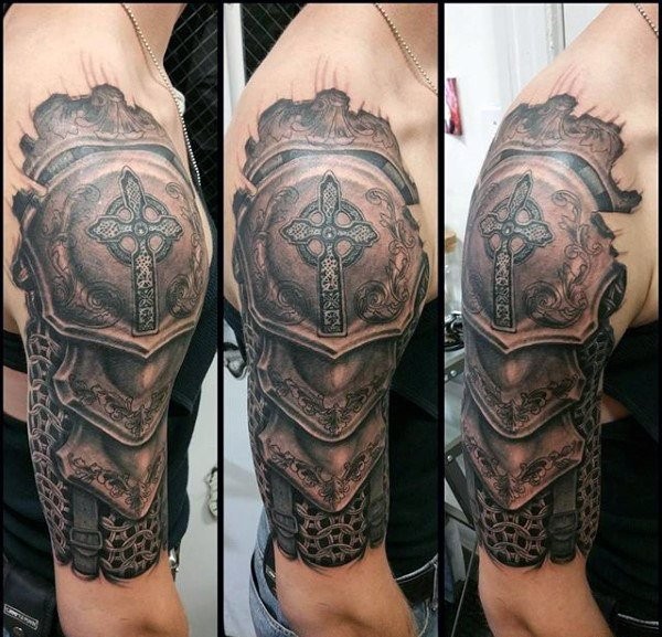 男性手大臂膀刚强有力的盔甲盾牌纹身图案