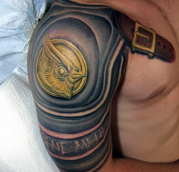 男性手大臂膀刚强有力的盔甲盾牌纹身图案