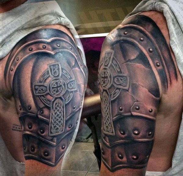 男性手大臂膀刚强有力的盔甲盾牌纹身图案