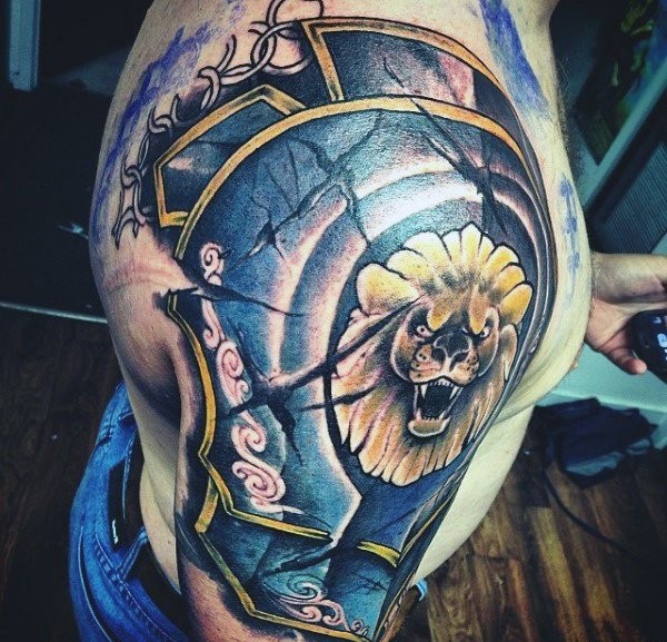 男性手大臂膀刚强有力的盔甲盾牌纹身图案