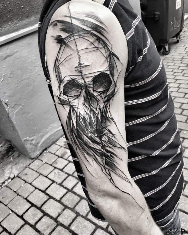 个性手臂悲伤的骷髅纹身图案图案图片_骷髅纹身图案大全_纹身图吧