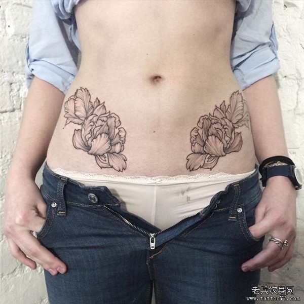 女生腹部花卉小清新性感纹身图案