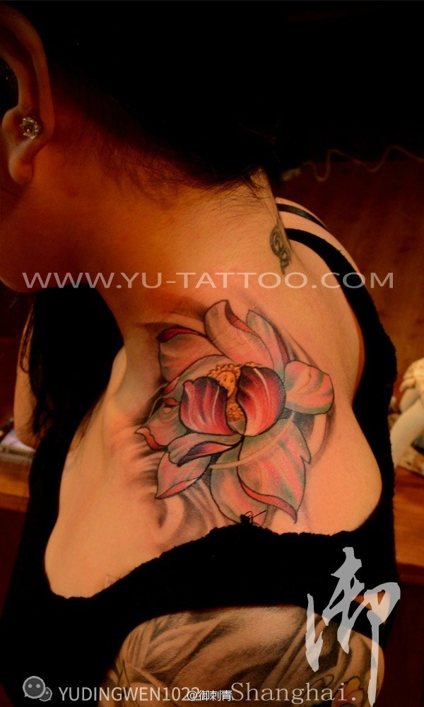 女生肩花纹身_15张女性双肩对称的肩花纹身图案作品图片