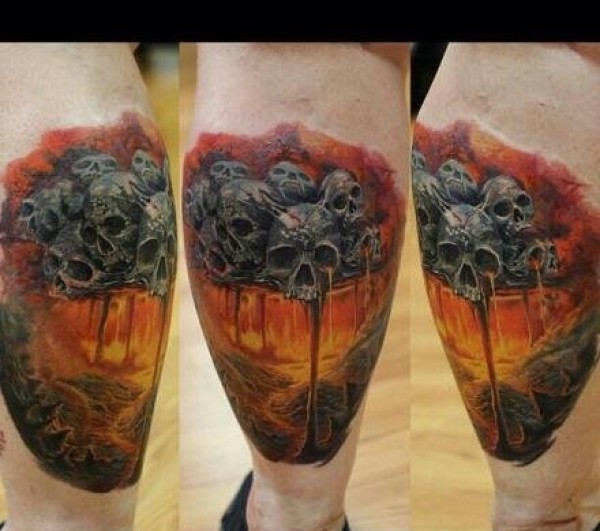 花腿纹身--一组大黑腿纹身图案作品欣赏