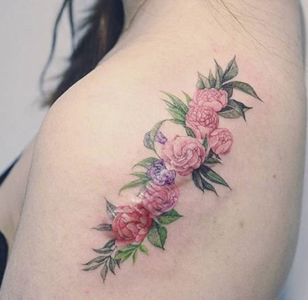 后肩唯美花藤英文图案图片_植物纹身图案大全_纹身图吧